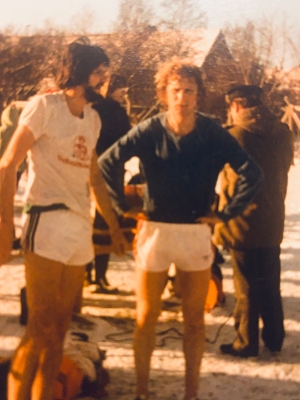Ich lernte Rüdiger Anfang der 70er-Jahre zu Beginn seiner Karriere kennen. Wir trafen uns zufälligerweise am Heiligabend auf meiner Trainingsrunde. Rüdiger war schon ca. 8 km von seinem zu Hause unterwegs und wir liefen dann gemeinsam meine knapp 10 km lange Standardstrecke um den Rosensee in Schwentinental. Normalerweise lief ich diese Runde zwischen 34 und 40 Minuten. An jenem Tag benötigten wir aber über 60 Minuten. Ich fühlte keinerlei Anstrengung und Erschöpfung und war völlig unbefriedigt. Meine feste Überzeugung war, das Training hätte ich mir schenken können. In den Folgejahren sahen wir uns dann gelegentlich bei Wettkämpfen, trainierten aber nicht gemeinsam. Rüdiger entwickelte sich dann von Jahr zu Jahr immer besser, während ich stagnierte. Aber 1977 verabredeten wir uns doch wieder für einen gemeinsamen Lauf. Nachdem er am Vormittag schon 20 km gelaufen war, liefen wir am Nachmittag gemeinsam 25 km und benötigten 2:20 Stunden. Das war für mich der Start für langsame und lange Läufe und der Beginn einer Läuferfreundschaft. Mindestens zweimal in der Woche verabredeten Rüdiger und ich mich ab dem Zeitpunkt für ein gemeinsames Training und sind in den nächsten Jahren unzählige Kilometer zusammengelaufen. Meine läuferische Entwicklung nahm jetzt auch Gestalt an und ich verbesserte mich stetig. Dennoch erreichte ich mit ca. 130 – 150 Wochenkilometern nicht den Umfang von Rüdiger, der meistens 160 – 200 Kilometer pro Woche erreichte. Von 1980 an startete ich dann auch für Gut-Heil Neumünster, neben der LG Itzehoe und Phönix Lübeck, eine der Hochburgen des Laufens in Schleswig-Holstein. Nach derselben Trainingsmethode trainierten in diesem Verein weitere erfolgreiche Läufer, wie beispielsweise Roland Szymaniak, der eine Marathonbestzeit von 2:15 Stunden erzielte und mehrere Ergebnisse zwischen 2:16 und 2:20 aufweisen konnte. Roland trainierte zu dem Zeitpunkt Woche für Woche zwischen 200 und 240 km.